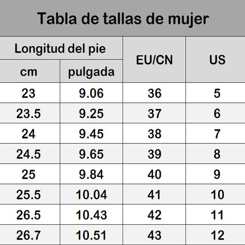 | Taille EU | Longueur du pied (cm) | Taille US (Femme) |