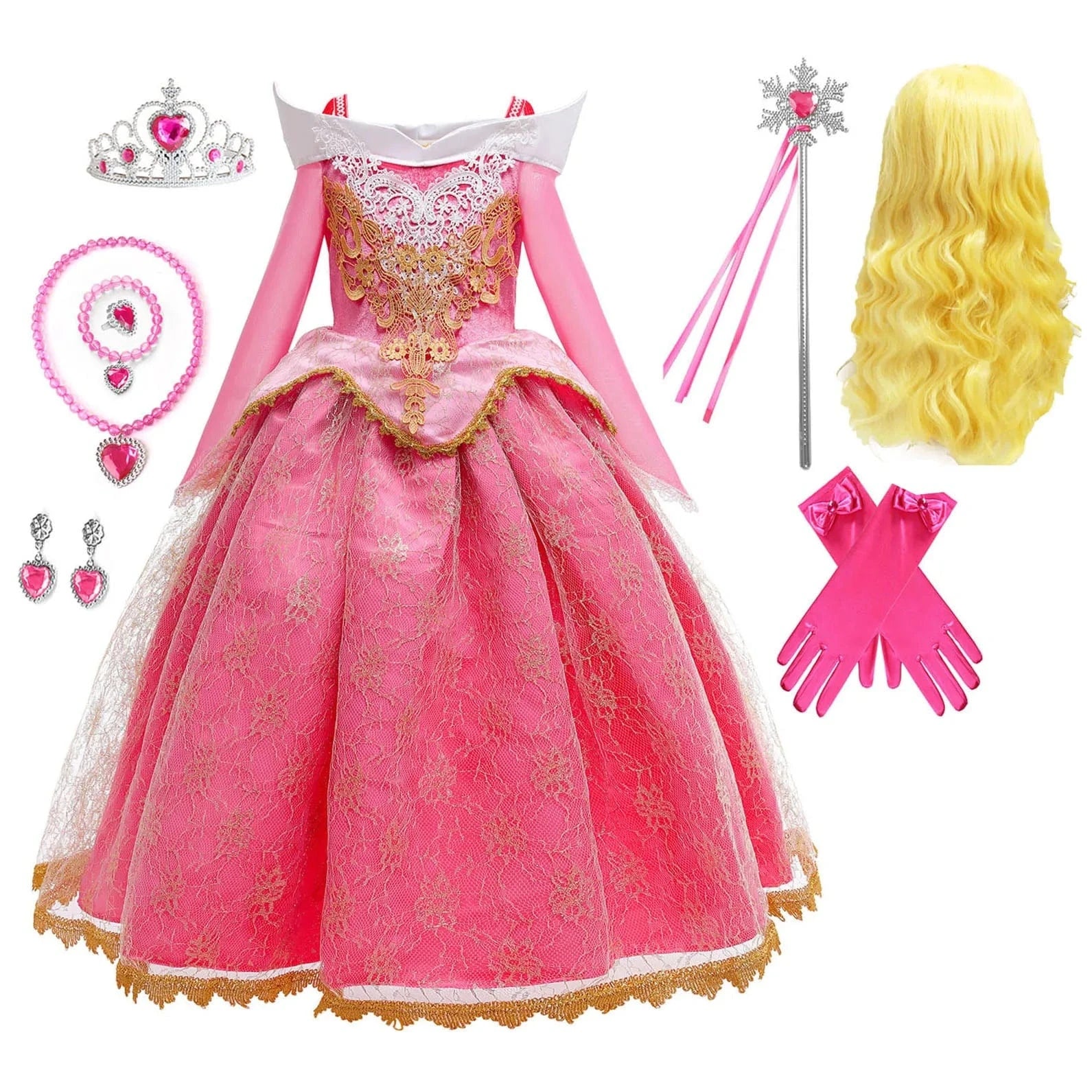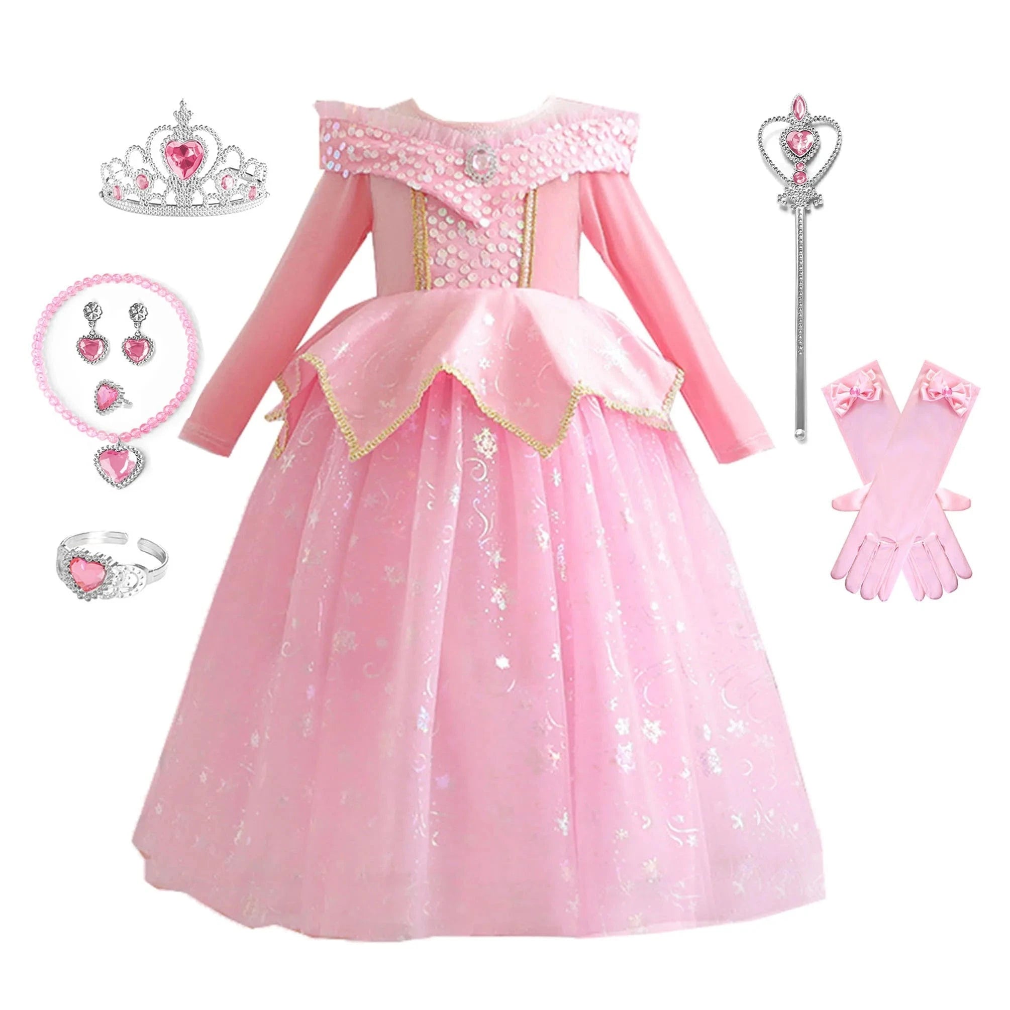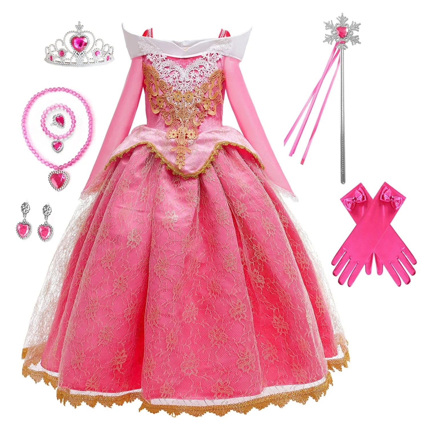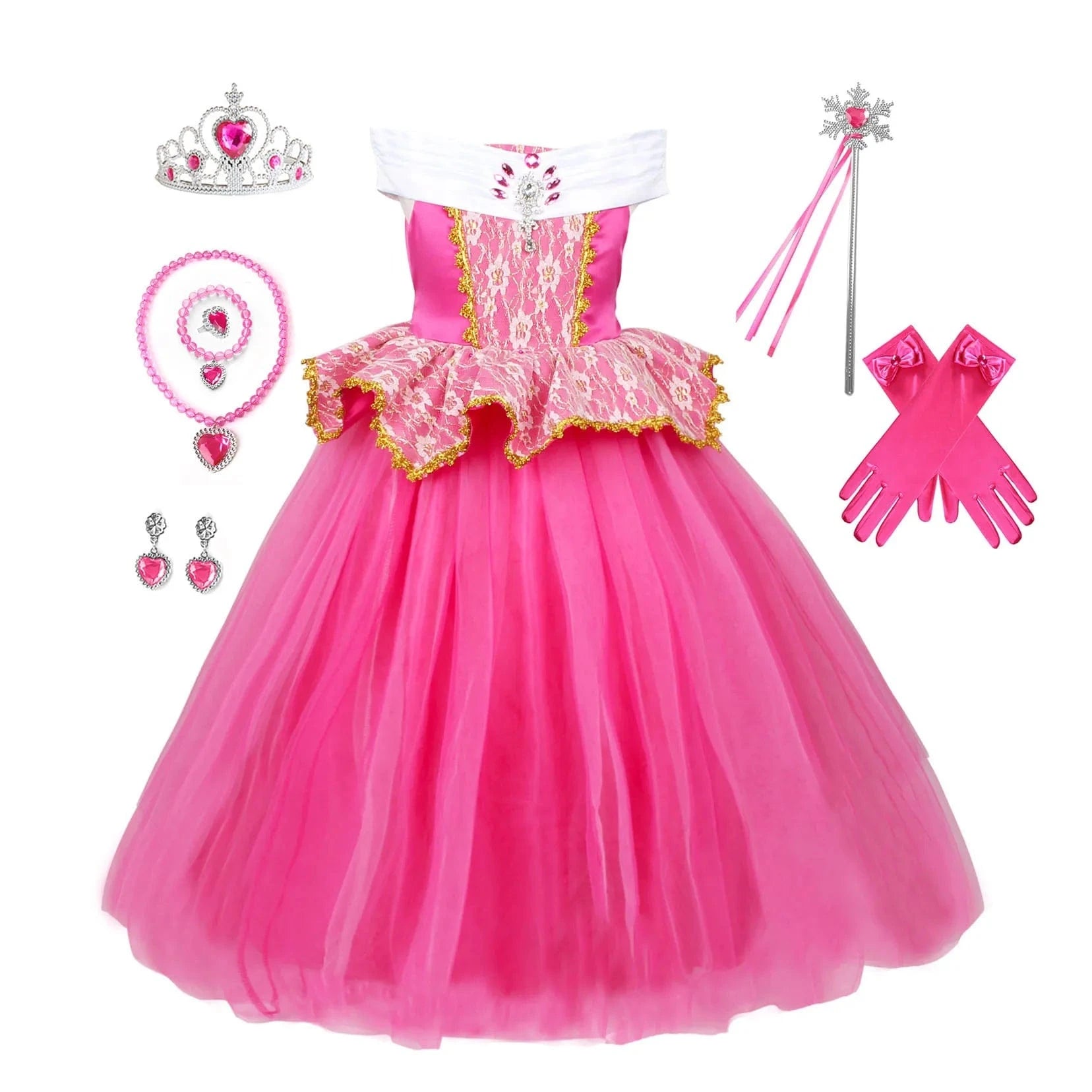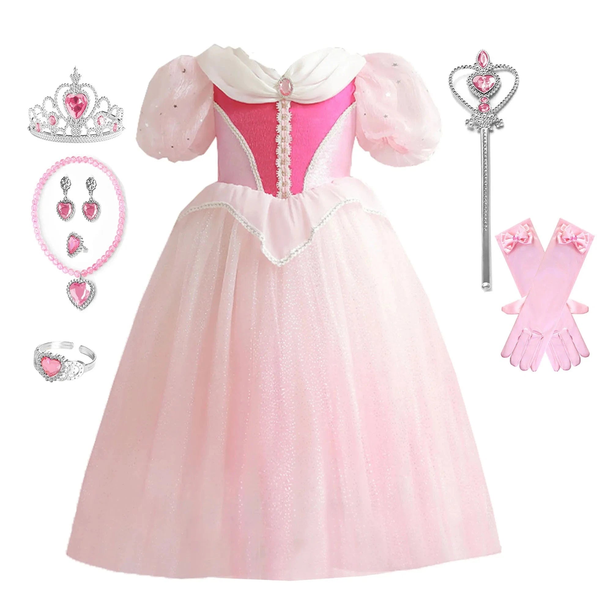- Accessoires inclus : couronne, baguette magique et gants.