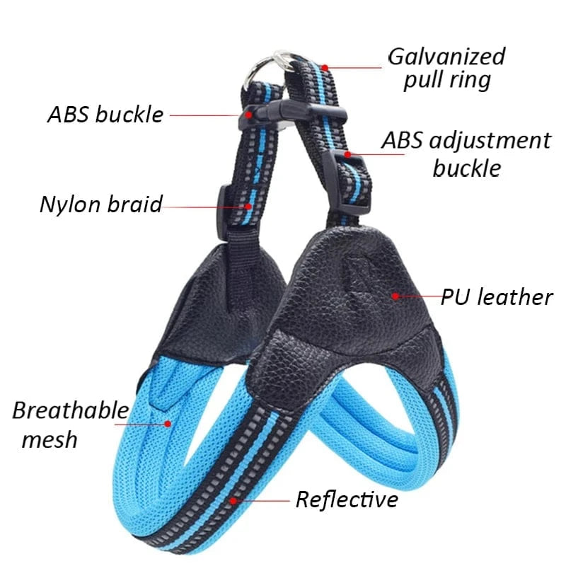 - Design : Harnais moderne et élégant, parfait pour les promenades quotidiennes et les aventures en plein air.