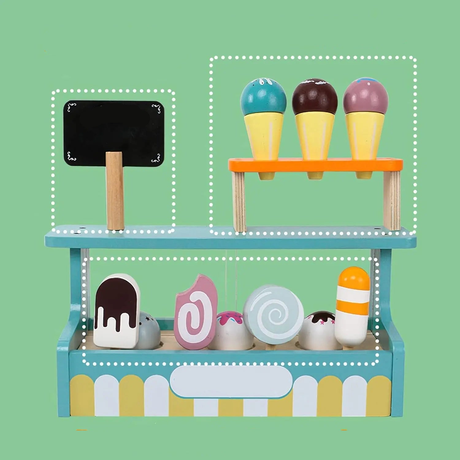 Ajoutez une touche gourmande et éducative à l’aire de jeu de votre enfant avec ce comptoir à glace complet et durable.
