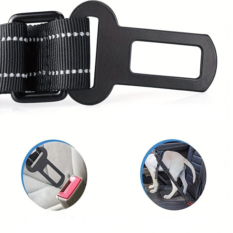 - Fixations pratiques : mousqueton métallique pivotant et embout type boucle de ceinture pour une utilisation en voiture (à utiliser avec un harnais adapté).