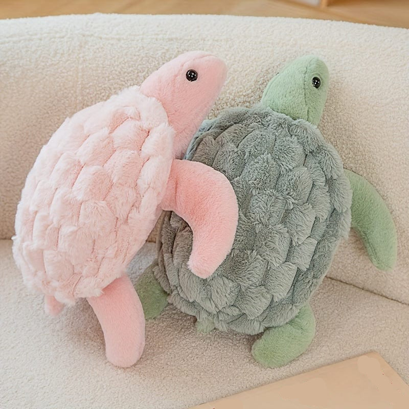 - Design animalier : Forme de tortue avec carapace texturée et coloris doux.