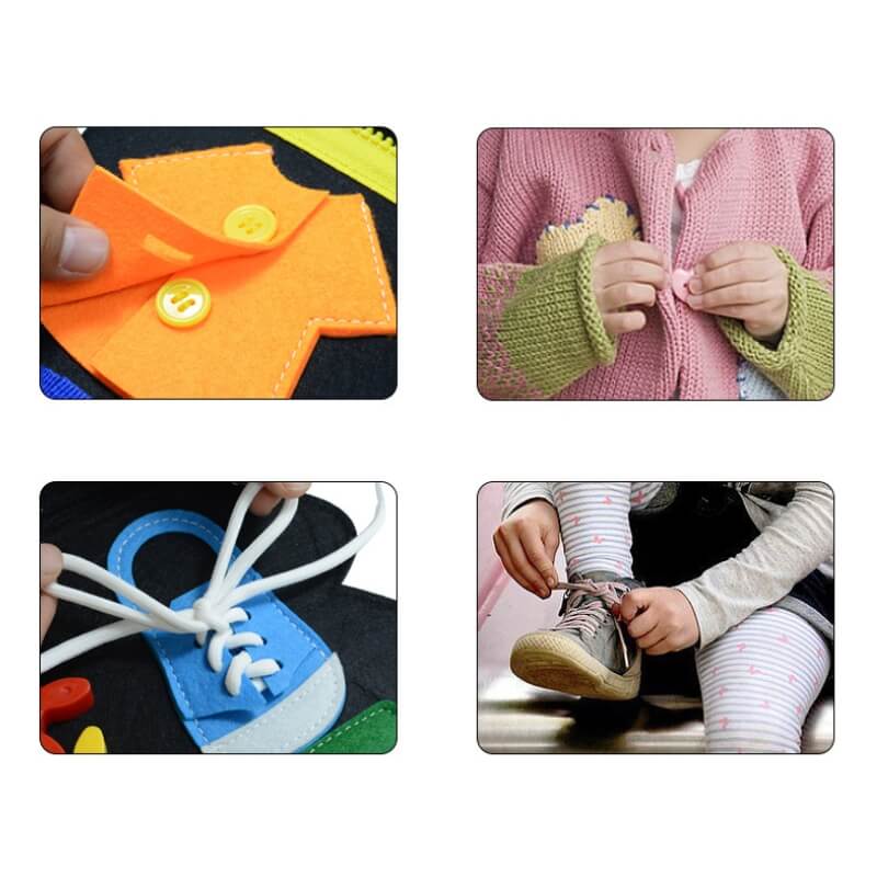 Votre enfant jouera avec des fermetures éclair, des boucles, des engrenages, des horloges, des lacets et bien d’autres choses encore. Et tout en le faisant, il :