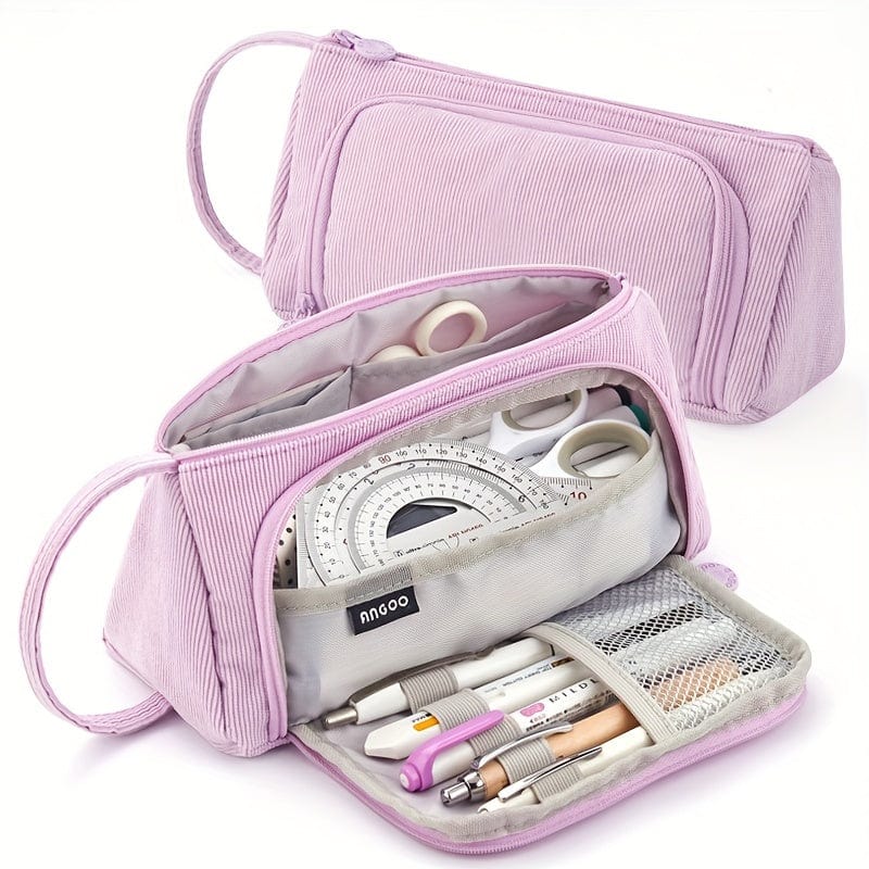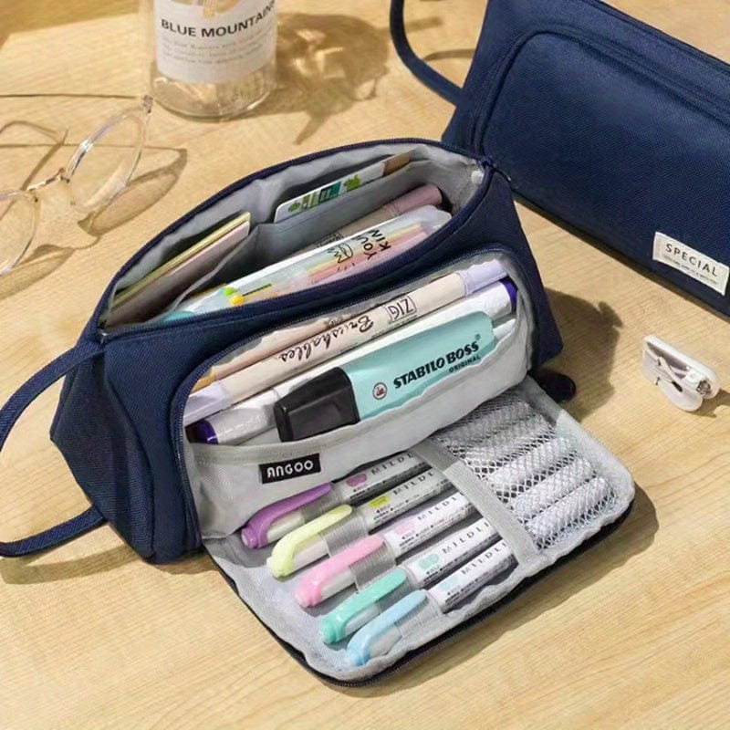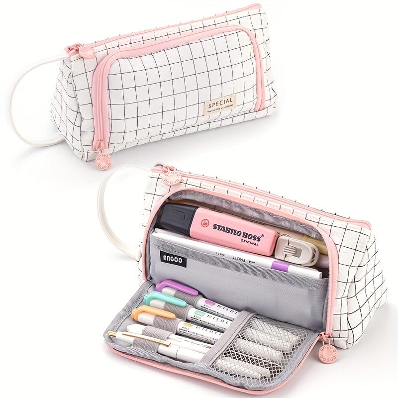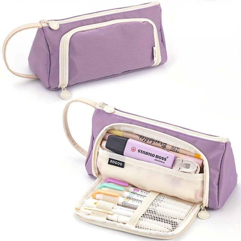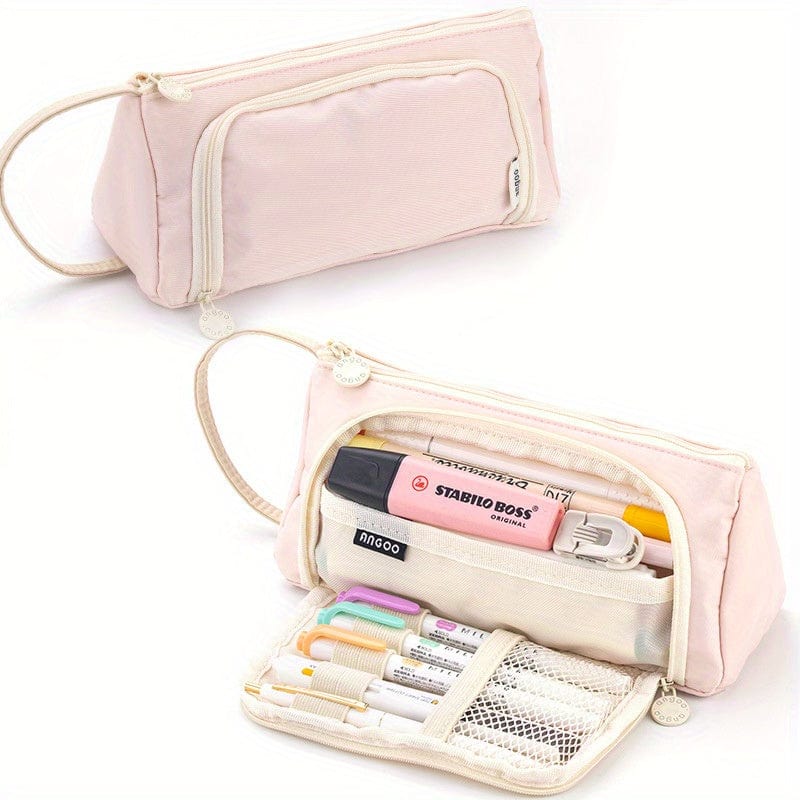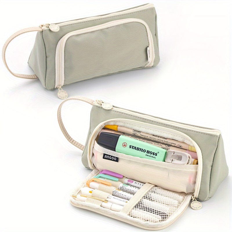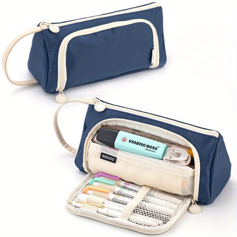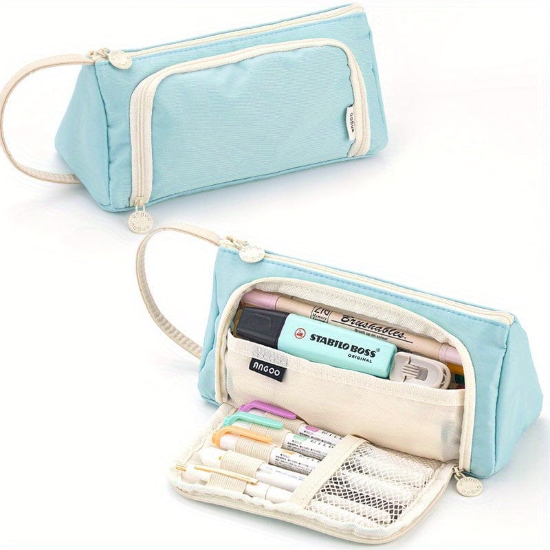 Trousse scolaire zippée grande capacité avec ouverture frontale – format triangulaire